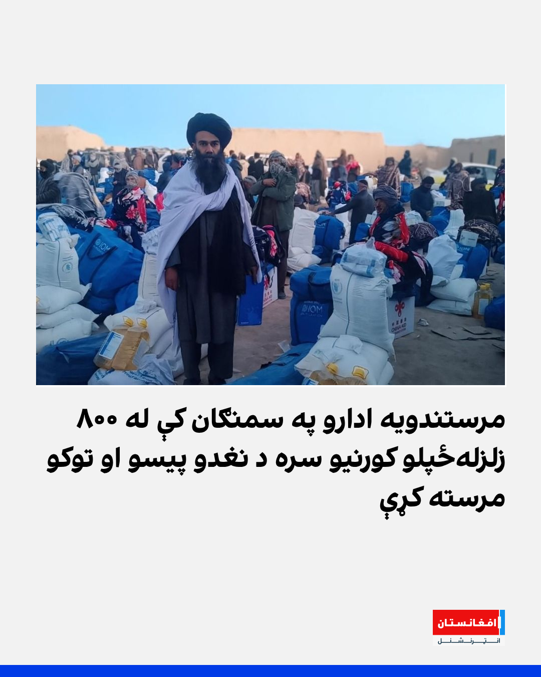 په سمنګان کې د پېښو پر وړاندې د طالبانو د مبارزې ادارې ویلي، چې د خوړو نړۍوال پروګرام (WFP)، د کډوالۍ نړۍوال سازمان (IOM)، د ناروې د کډوالو شورا (NRC) او افغان اېډ موسسې له ۸۰۰ زلزلهځپلو کورنیو سره نغدي، د خوراکي او غېرخوراکي توکو مرستې کړې دي.