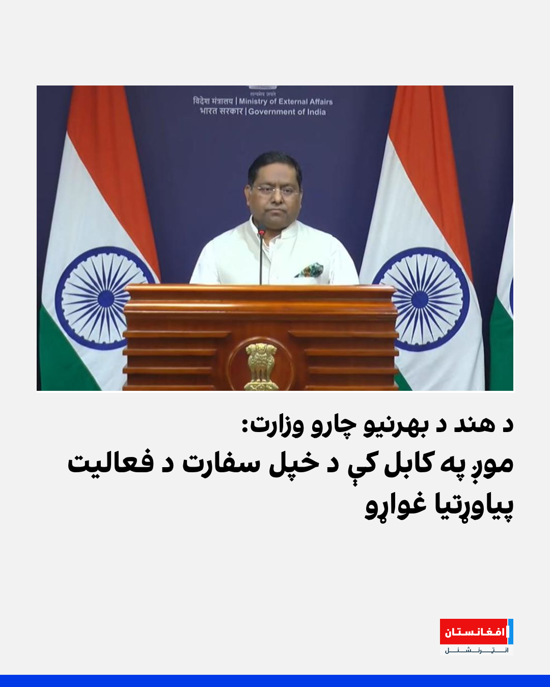 د هند د بهرنیو چارو وزارت ویاند رندیر جېسوال ویلي، چې نوې ډیلي په کابل کې د خپل سفارت د دندو، مسوولیتونو او د کارکوونکو د شمېر د زیاتولو څرنګوالی ارزوي او په وروستۍ پرېکړه کې به جزیات شریک کړي. هغه د دې پوښتنې په اړه چې ایا هند به طالبان په رسمیت وپېژني، ځواب ورنه کړ.