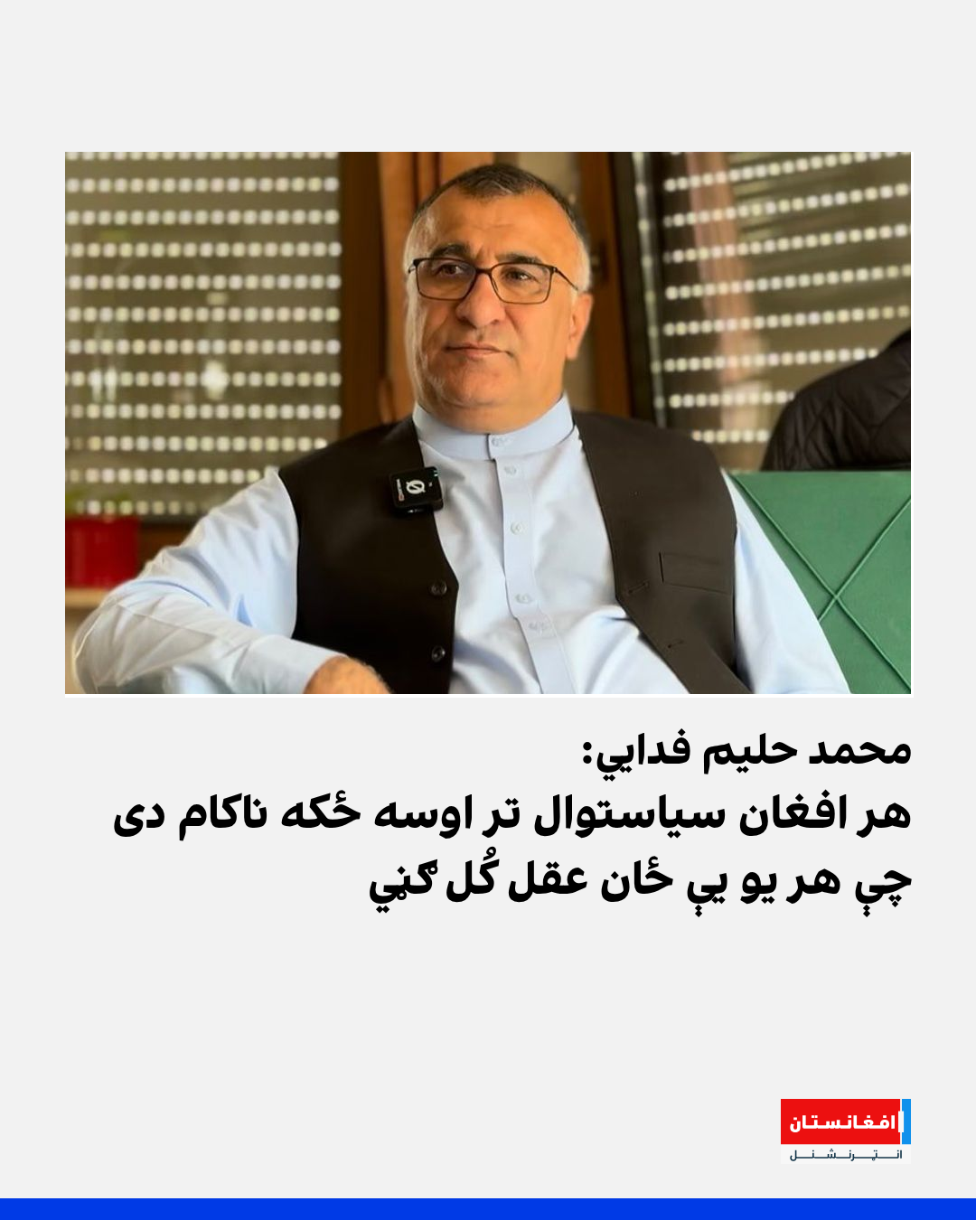 د جمهوري نظام پر مهال د خوست پخوانی والي حلیم فدايي واشنګټن ته د سوریې د ولسمشر سفر ته په اشارې وايي، احمد الشرع په کمه موده کې پر دې وتوانېد چې سوریه له نړۍوالو بندیزونو وژغوري او یو قانونمند حکومت جوړ کړي، خو په وینا یې افغان سیاستوال ځکه ناکام دي چې هر یو یې ځان عقل کُل ګڼي.