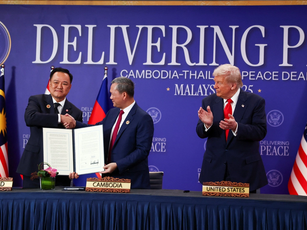 د تايلنډ حکومت د سرحدي ګزمې پرمهال د ماین په چاودنه کې د خپلو دوو سرتېرو له ټپي کېدو وروسته له کمبوډیا سره د سولې تړون چارې ځنډولې دي. دغه تړون د ولسمشر ډونالډ ټرمپ په منځګړتوب شوی دی.