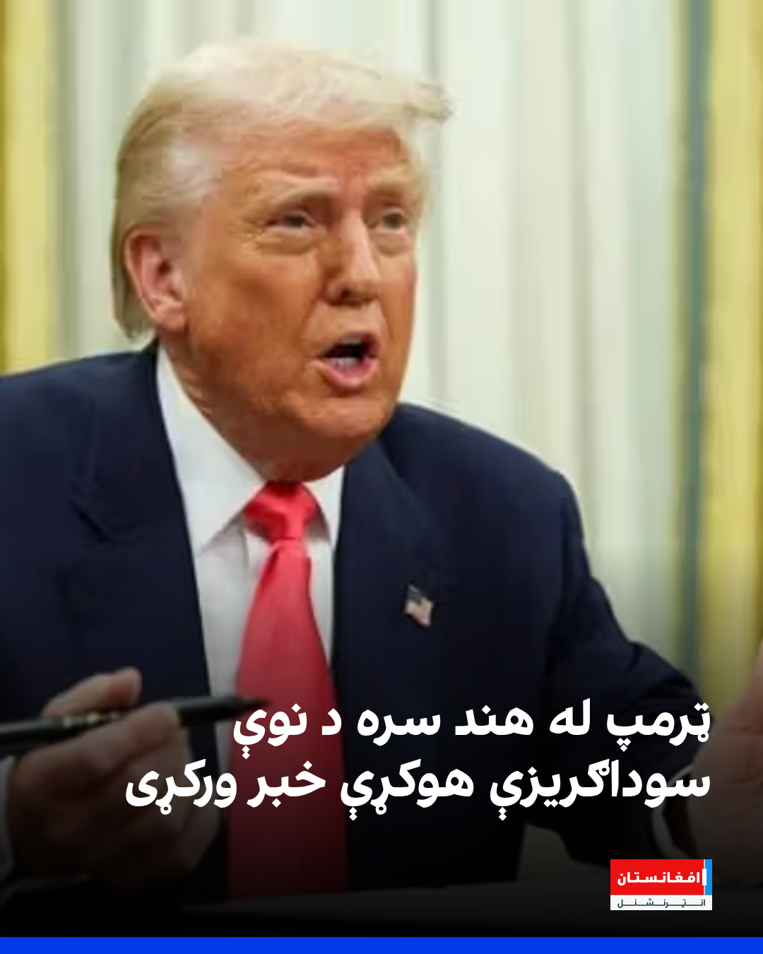 د امریکا ولسمشر ډونالډ ټرمپ له هند سره د نوې سوداګریزې هوکړې خبر ورکړی دی. ټرمپ په سپینه ماڼۍ کې د یوې غونډې پرمهال ویلي، هغه به له هند سره داسې هوکړه لاسلیک کړي چې له پخوانیو هغو به توپیر ولري.