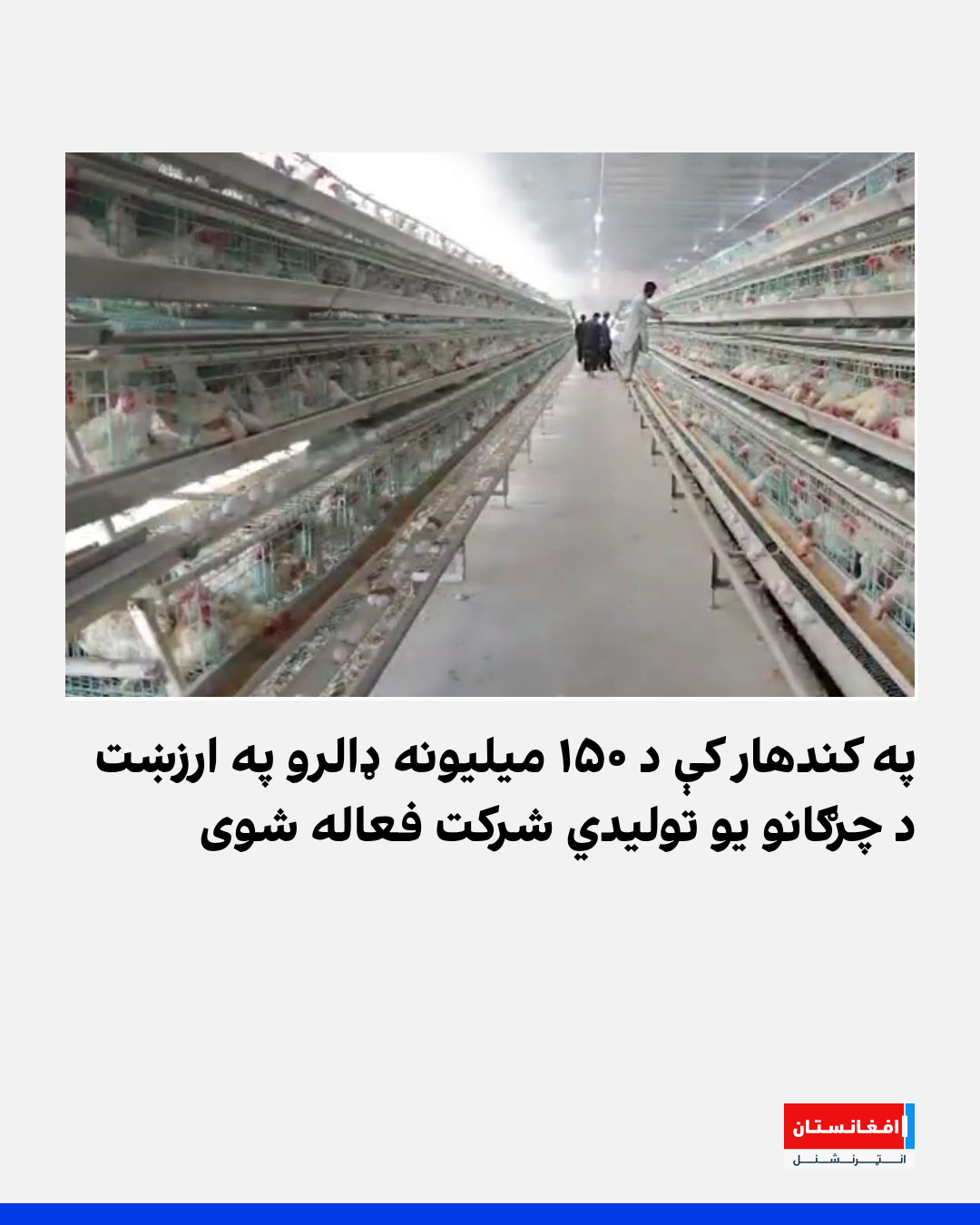 په کندهار کې د طالبانو د کرنې، اوبو لګولو او مالدارۍ ریاست مسوولین وايي، په دې ولایت کې د یوه ملي سوداګر له لوري د ۱۵۰ میلیونه ډالرو په ارزښت د چرګانو یو شرکت فعال شوی دی. طالبانو ویلي، یاد شرکت چې د چرګانو هر اړخیز فعالیتونه ترسره کوي، د کندهار ښار ۵۰ سلنه اړتیاوې پوره کړې دي.