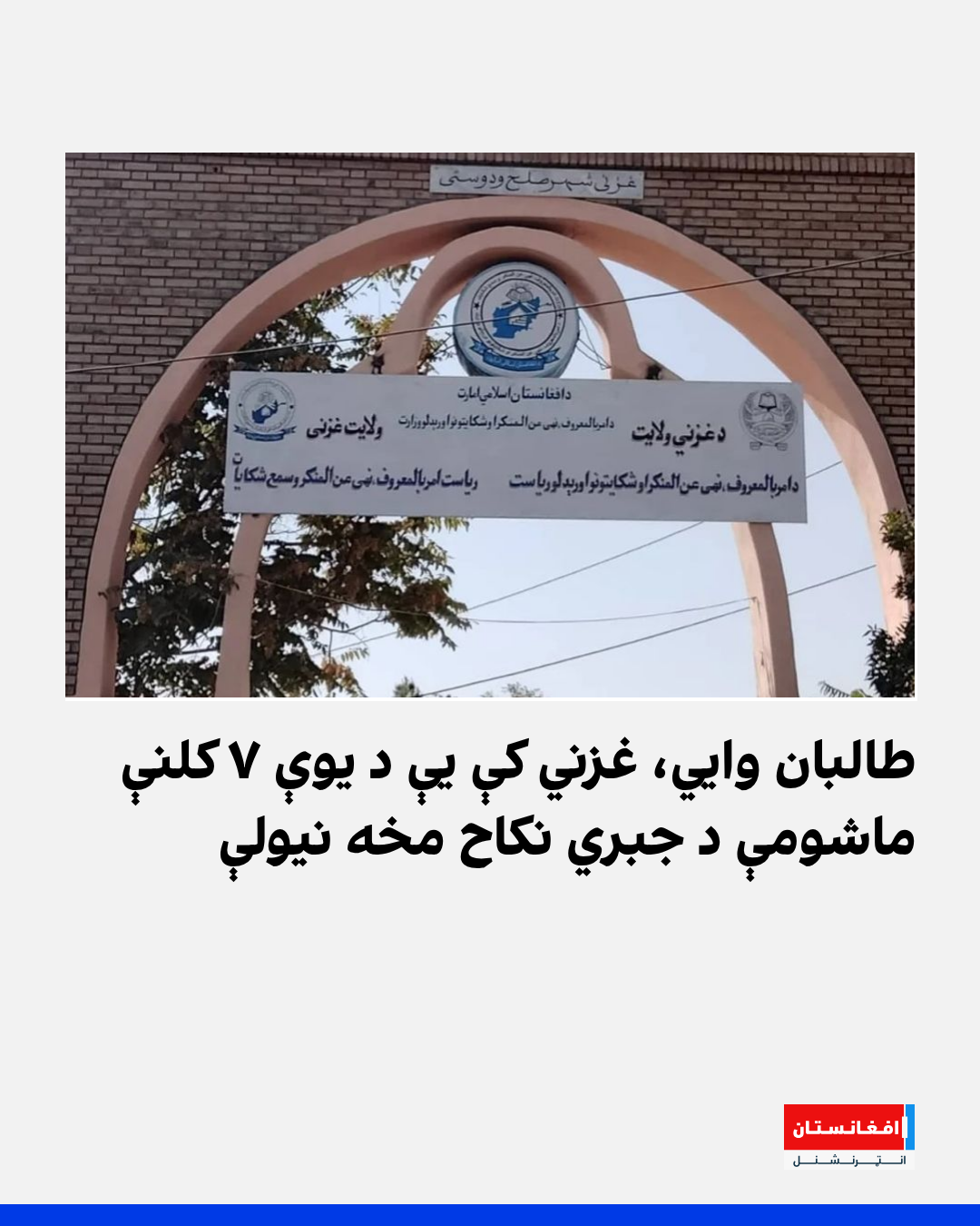 طالبان وایي، غزني کې یې د یوې ۷ کلنې ماشومې د جبري نکاح مخه نیولې