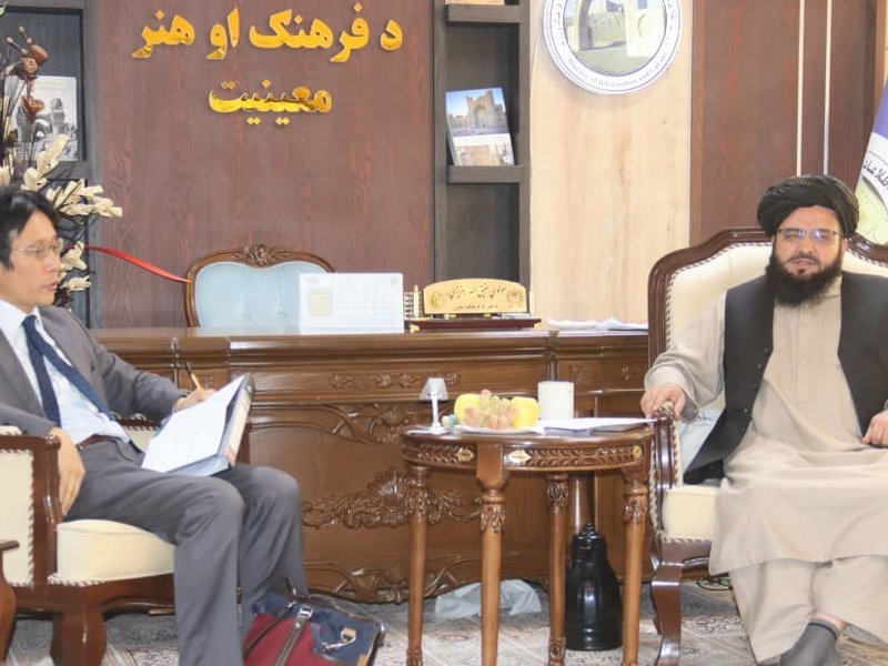د طالبانو د اطلاعاتو او کلتور وزارت د فرهنګ او هنر معین مولوي عتیقالله عزیزي د جاپان سفیر ماساموتو کِینیچي سره د فرهنګي همکاریو او تاریخي میراثونو د ساتنې په اړه ناسته کړې ده. په دغه ناسته کې دواړه خواوو د افغانستان د لرغونو اثارو خوندي کولو ژمنه کړې.