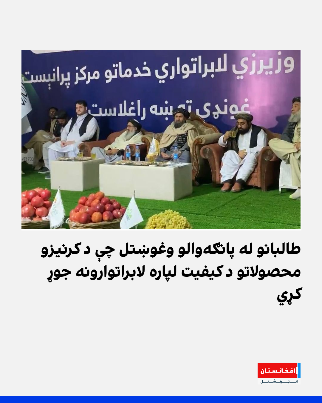 د طالبانو د رییسالوزرا اقتصادي مرستیال په کندهار کې د کرنیزو محصولاتو د کیفیت او ارزښت د لوړولو په موخه د یوه خصوصي لابراتوار په پرانېست غونډه کې له پانګهوالو وغوښتل، چې د کرنیزو محصولاتو د کیفیت د تضمین لپاره لابراتوارونه جوړ کړي.