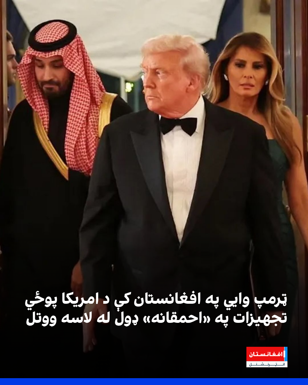 د امریکا ولسمشر ډونالډ ټرمپ په سپینه ماڼۍ کې د سعودي عربستان له ولیعهد محمد بن سلمان سره د لیدنې پر مهال وویل، چې متحده ایالاتو د خپلو مشرانو د «ناسمو پرېکړو» له امله د پوځ یوه برخه تجهیزات په «احمقانه ډول» په افغانستان کې له لاسه ورکړل.