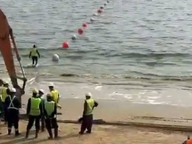د راپورونو له مخې، د کېبل اېښودلو مراسم د هاکس بې په ساحل کې ترسره شول.