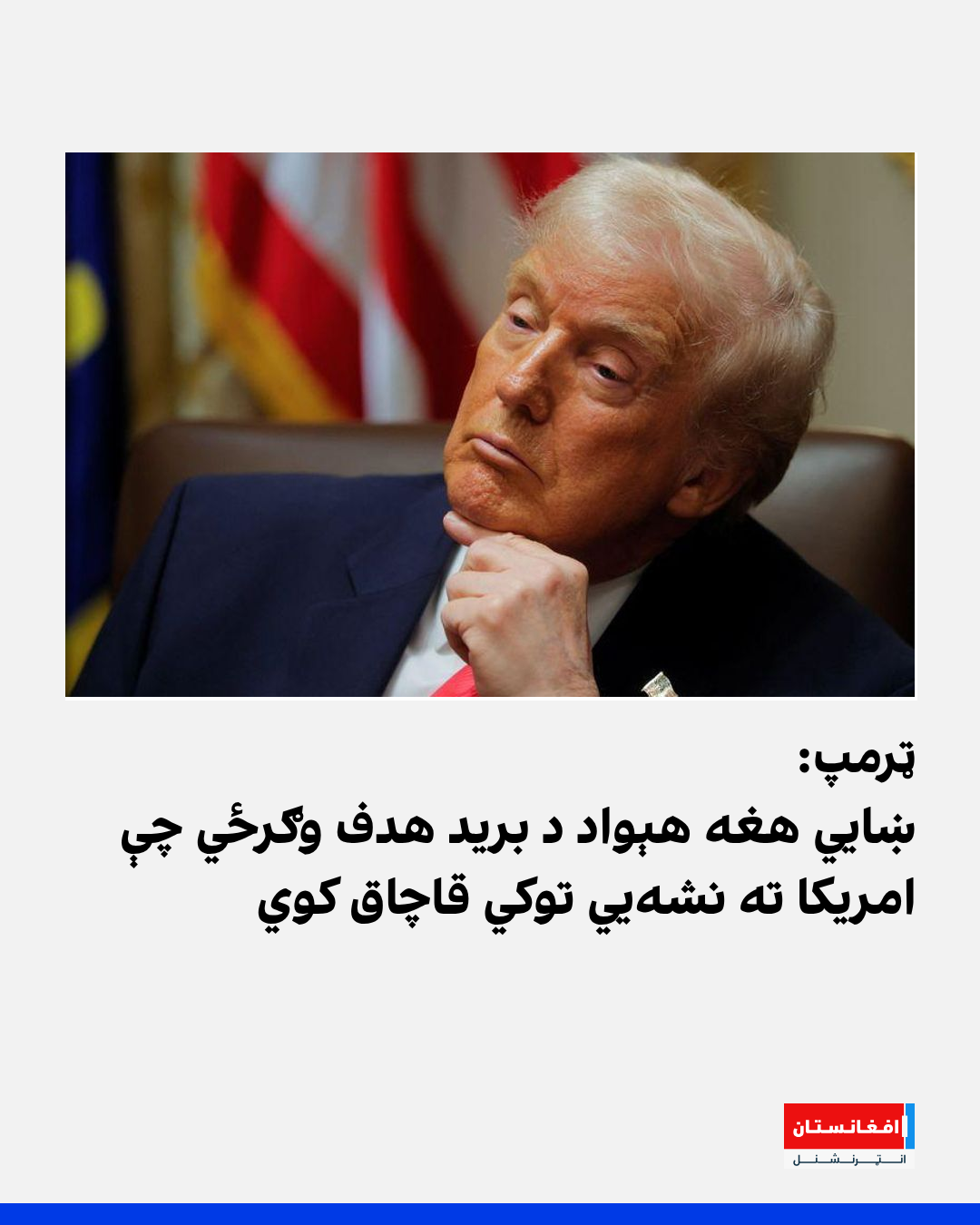 د امریکا ولسمشر ډونالډ ټرمپ ویلي: «هر څوک چې دا کار کوي او دا توکي زموږ په هېواد کې پلوري، د امریکا له برید سره به مخ شي.»