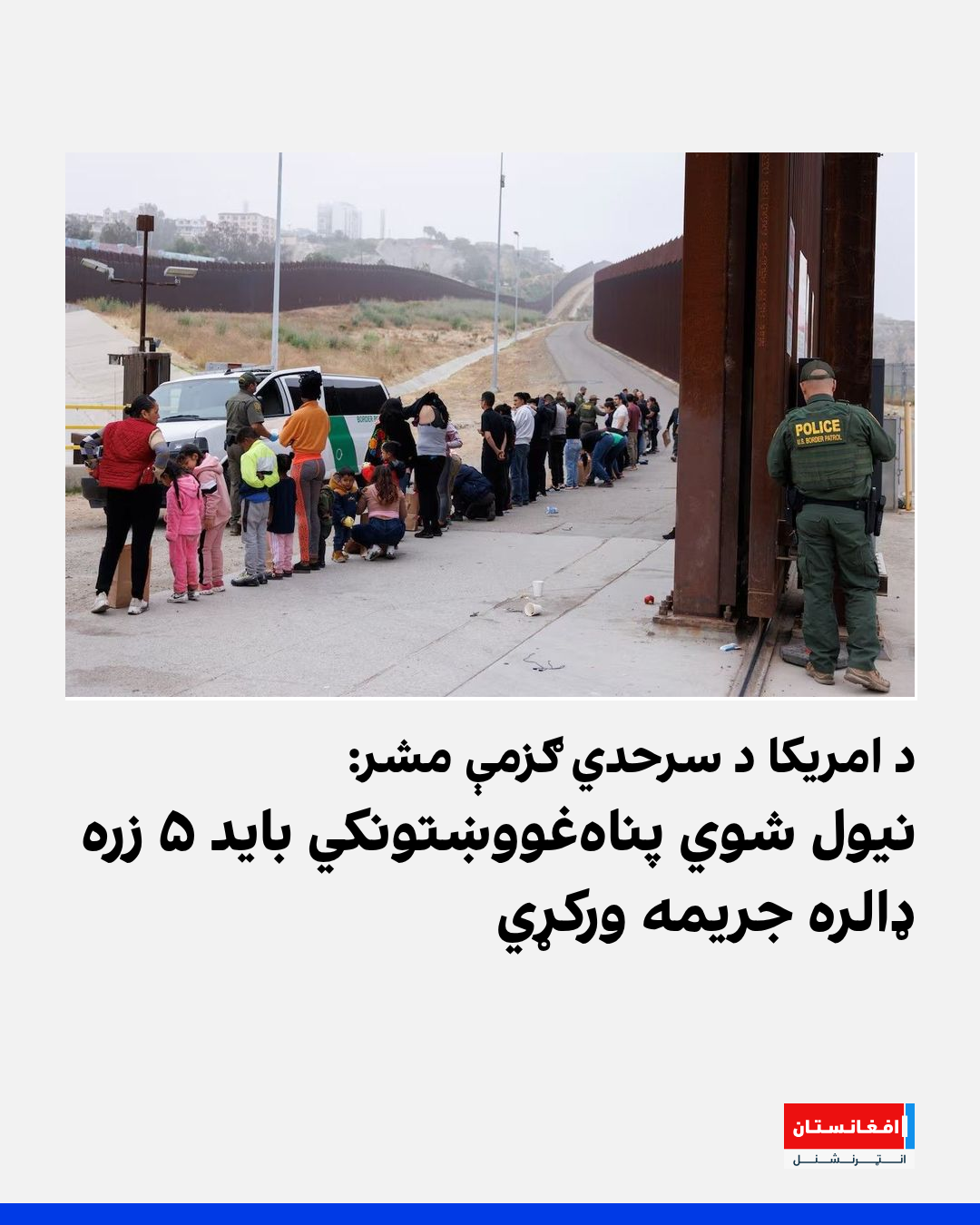 د امریکا د سرحدي ګزمې مشر مایکل بنکس اعلان کړی، چې ټول هغه پناهغوښتونکي چې له ناقانونه ننوتلو وروسته نیول شوي، باید پنځه زره ډالره جریمه ورکړي. د بنکس په وینا، دا لګښت پر ټولو هغو کسانو تطبیق کېږي، چې عمر یې له ۱۴ کلونو پورته وي او پرته له قانوني معاینې امریکا ته داخل شوي وي.