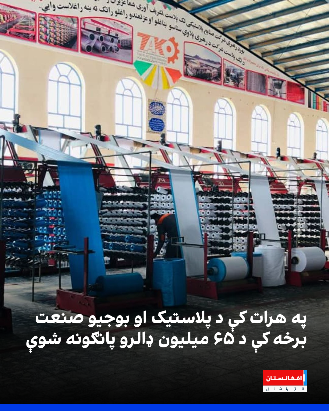 د طالبانو د هرات والي ویاند محمد یوسف سعدي په اېکس کې لیکلی، چې د هرات د پلاستیک تولیدوونکو د اتحادیې د معلوماتو له مخې، د ۸ فعالو شرکتونو ترڅنګ ټولټال ۶۵ میلیونه ډالره پانګونه شوې ده.
