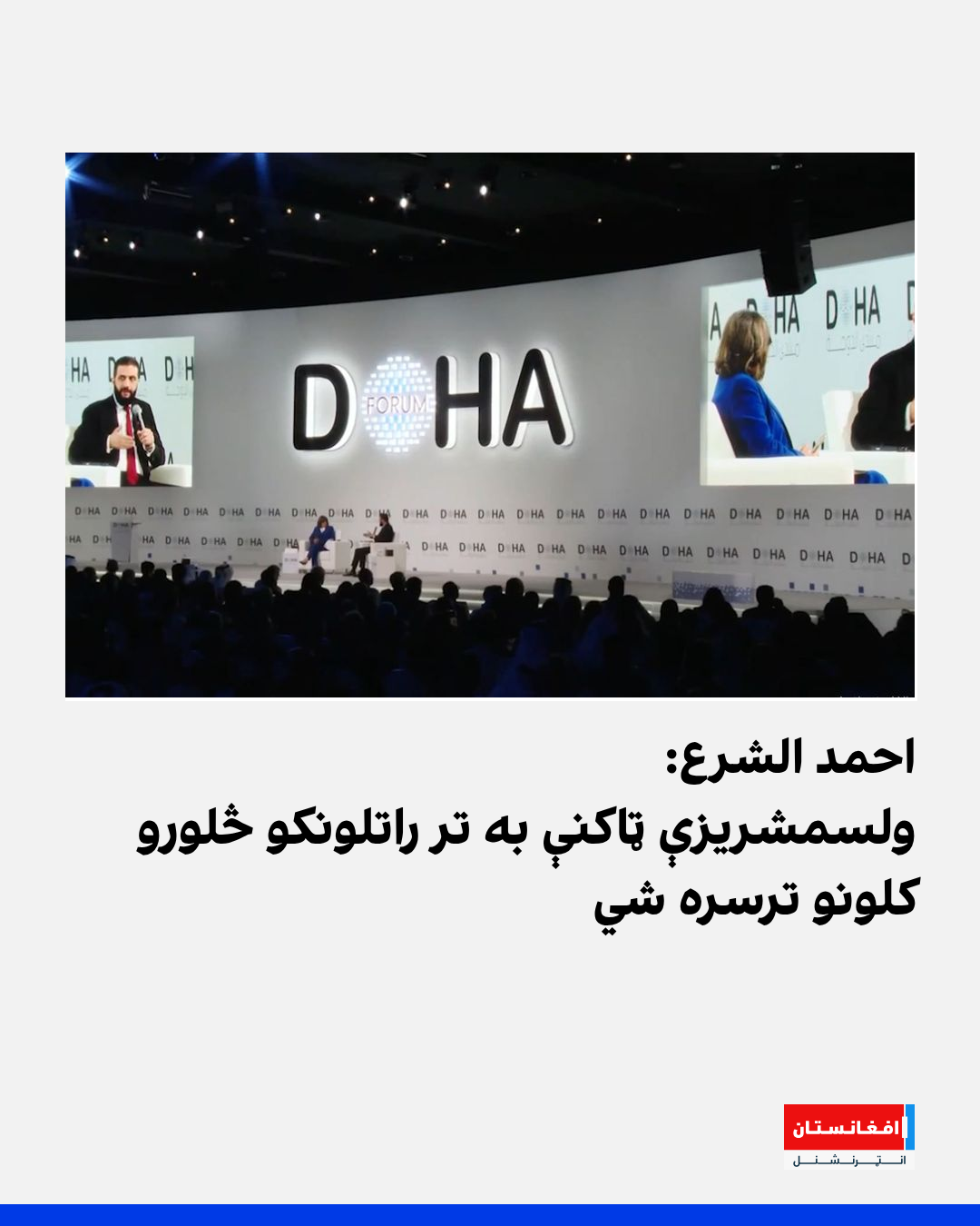 د سوریې لنډ مهالي ولسمشر احمد الشرع د دوحې فورم په ۲۳مه غونډه کې وویل، د سوریې په اوسني دولت کې ټولې ډلې حضور لری او د مذهب او قومیت پر بنسټ د واک وېشنه «لویه تېروتنه» ده. هغه په ډاګه کړه، چې تر راتلونکو څلورو کلونو به ولسمشریزې ټاکنې وشي.