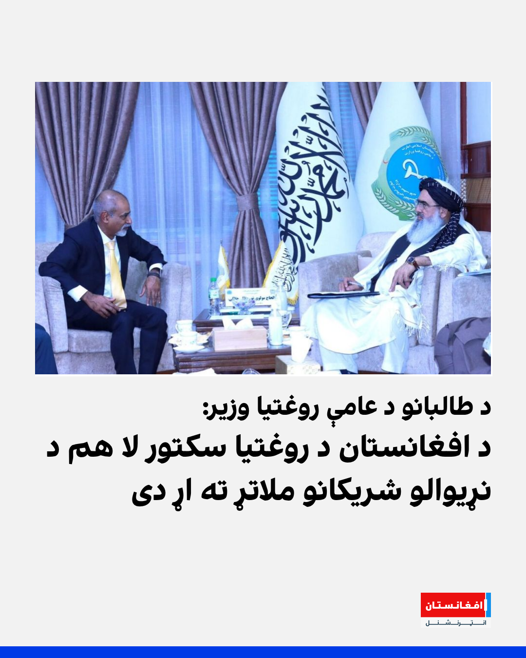 د طالبانو د عامې روغتیا وزیر نور جلال جلالي د سويلي اسیا لپاره د یونېسیف ادارې مشر سنجی وېجسېکره سره په کتنه کې ویلی، چې د افغانستان روغتیا سکتور د اوسنیو ظرفیتونو ترڅنګ لا هم د نړیوالو شریکانو ملاتړ ته اړتیا لري.