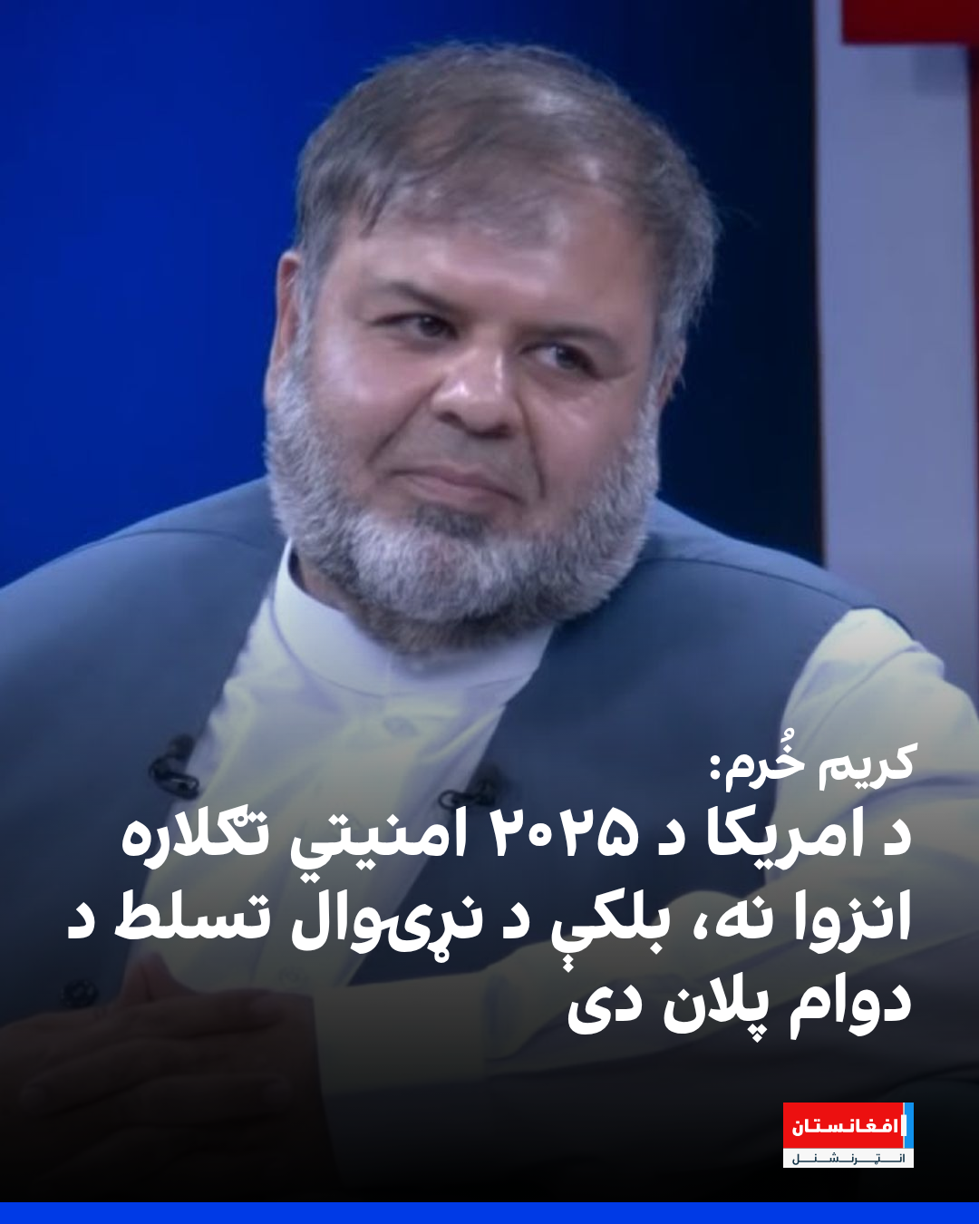 د تېر جمهوري نظام پر مهال د ولسمشر حامد کرزي د دفتر رییس عبدالکریم خُرم د امریکا د ۲۰۲۵ امنیتي تګلارې تازه خپرې شوې نسخې ته په اشارې ویلي چې په دې سند کې د افغانستان د نوم نهاخیستو باوجود د واشنګټن له سټراټیژیک لومړیتوبونو نه دی وتلی.
