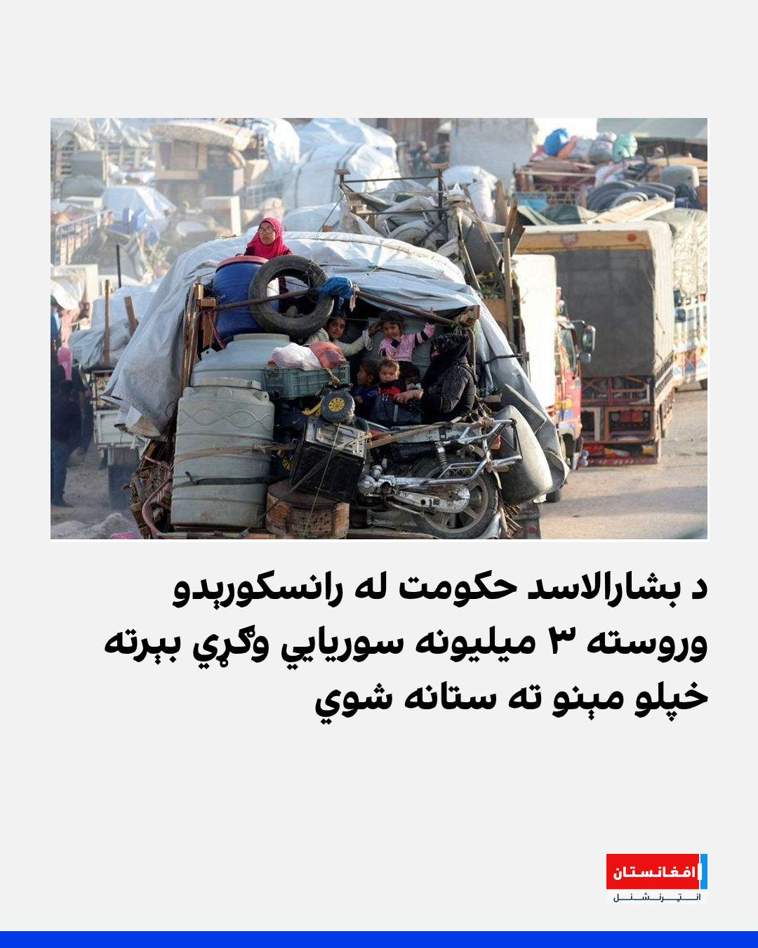 د ملګرو ملتونو د کډوالو ادارې د دوشنبې په ورځ (د لیندۍ ۱۷مه) وویل، په سوریه کې د بشارالاسد په مشرۍ د حکومت له رانسکورېدو وروسته شاوخوا ۳ میلیونه سوریايي وګړي بېرته خپلو مېنو ته ستانه شوي دي. په دې کې ۱،۲ میلیونه یې کډوال او ۱،۹ یې کورني بېځایه شوي دي.